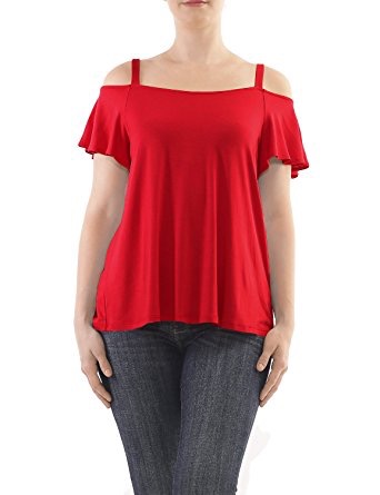 The blouse features a ruffled front, a lace-up v-neck, cap sleeves, a pleated back, and a high-low hem. You can see it online in this and other colors here.